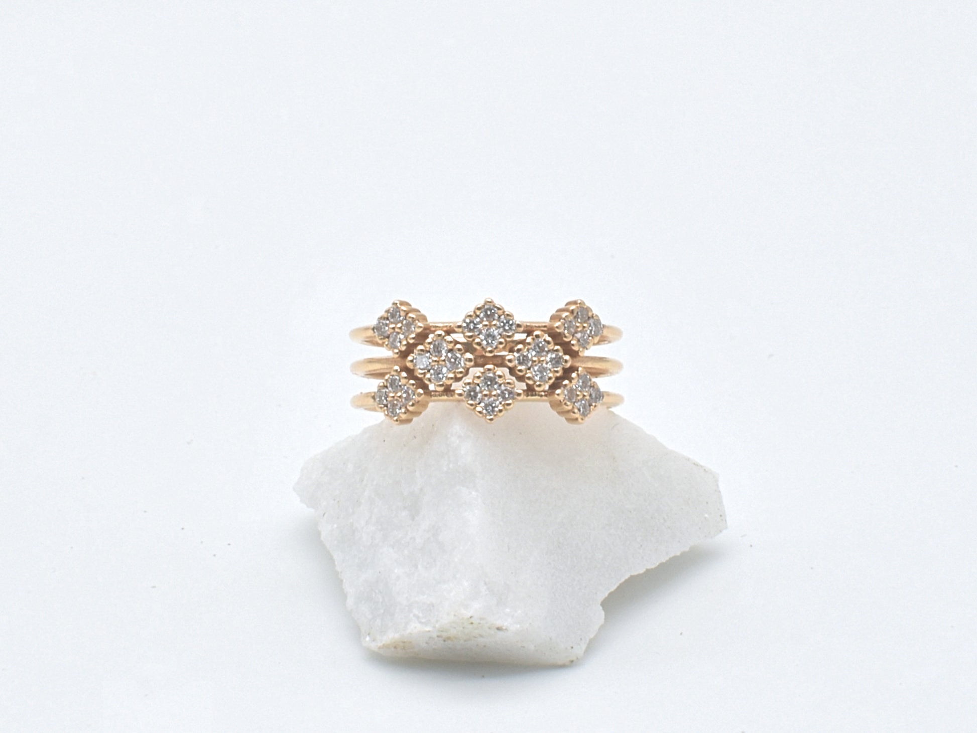 Bague en or à effet triple ornée de losanges en diamants
